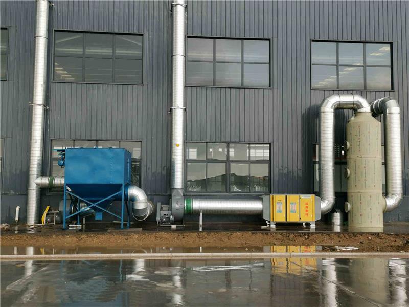 1、集氣系統部分:在車間機器產生廢氣的具體部位加上集風系統,然后安裝相對應的管道,風機作為動力將廢氣抽出;